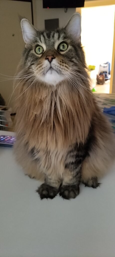 La mia è una storia un po’ particolare. Sono nato in un allevamento domestico, e anche se i miei genitori erano due splendidi Maine Coon, io, ahimè, non ho il pedigree. Ma non preoccupatevi, sono un Maine Coon autentico dentro e fuori, solo senza il certificato!