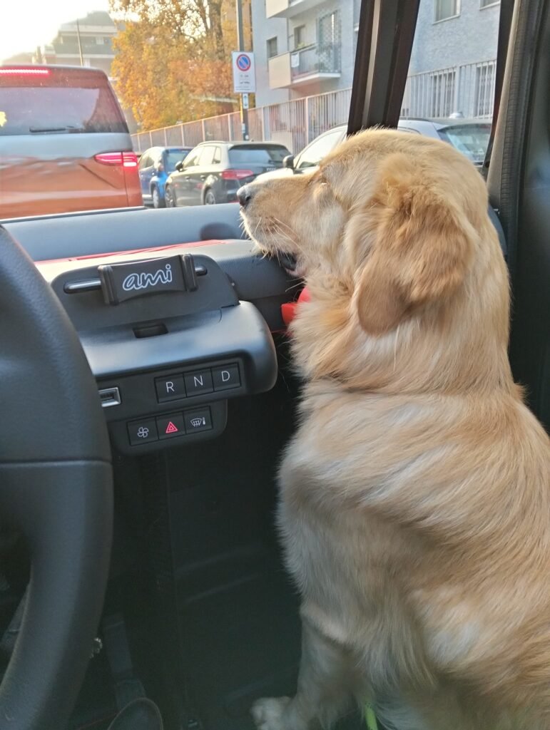 Credo che la mia umana abbia capito tutto questo e appena può mi carica sul suo bolide (la piccola AMI) e mi porta in un’area cani, non proprio vicino a casa, molto grande dove trovo quasi sempre amici con correre felice fino allo sfinimento.