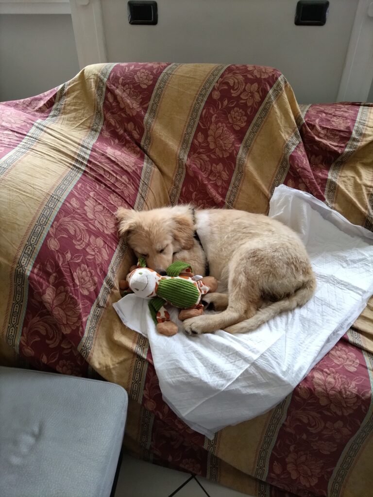 Mi portano in una casa. Una CASA! A me sembra enorme rispetto al mio piccolo box in rifugio. E’ piena di cose che non avevo mai visto prima. Immediatamente mi hanno buttato in una vasca e mi hanno lavato per benino, con il sapone di Marsiglia perché sembra sia ottimo per togliere gli odori e vi assicuro che io di odori ne avevo parecchi! Terminato il bagnetto, sfinito mi butto sul divano e mi addormento.